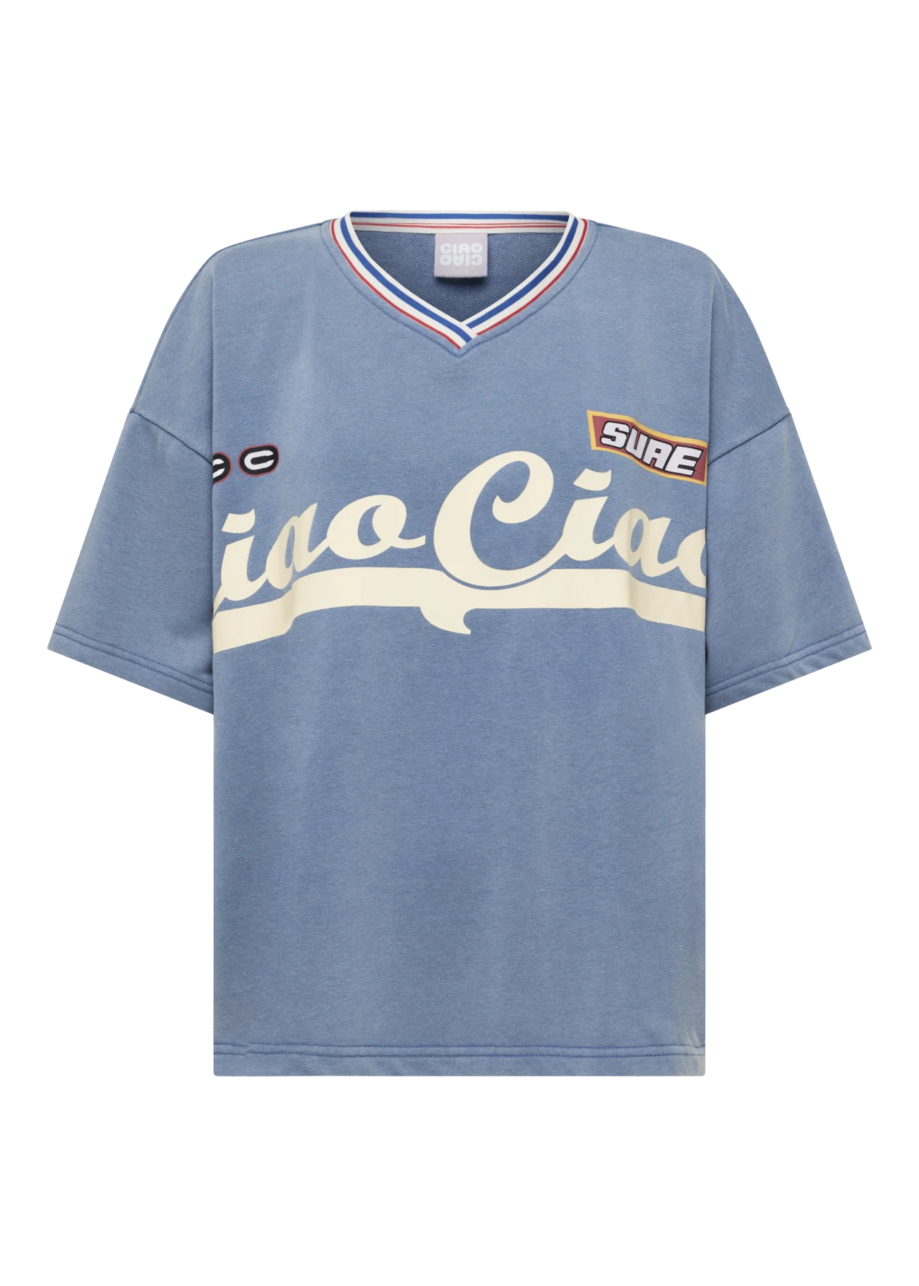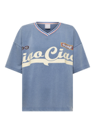 Relaxed-fit, vintage-inspired jersey featuring bold "ciao ciao" lettering, sporty patches and an effortless oversized silhouette. Designed for sun-drenched days and carefree adventures, this piece blends retro charm with modern ease.