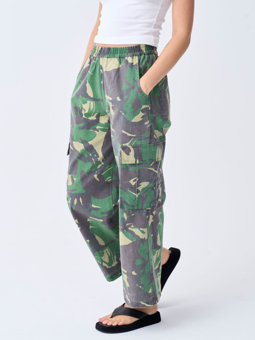 A army-camo cotton twill cargo pant which has carefully been stone washed for a softer and washed look..